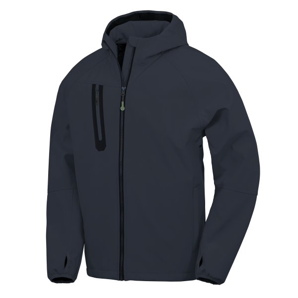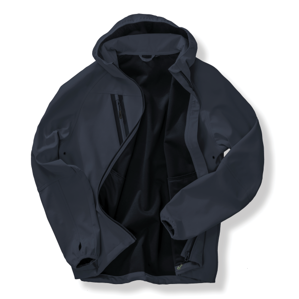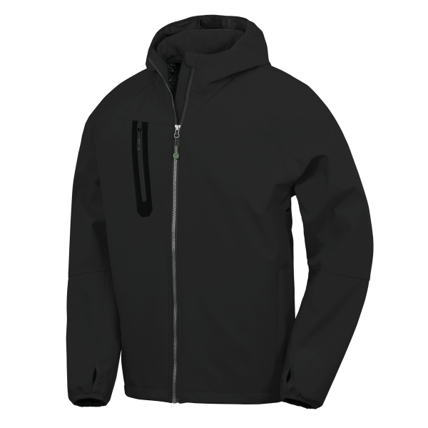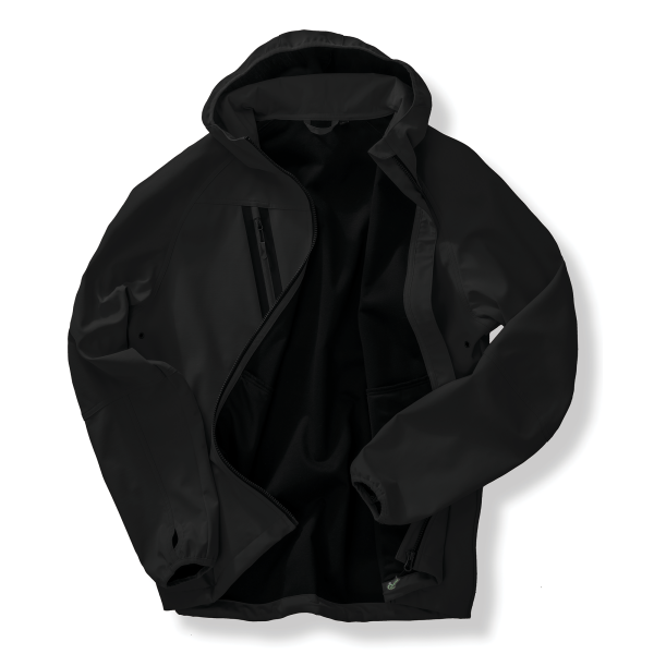 - Gerecyclede 3-laags uniseks softshelljack met capuchon.